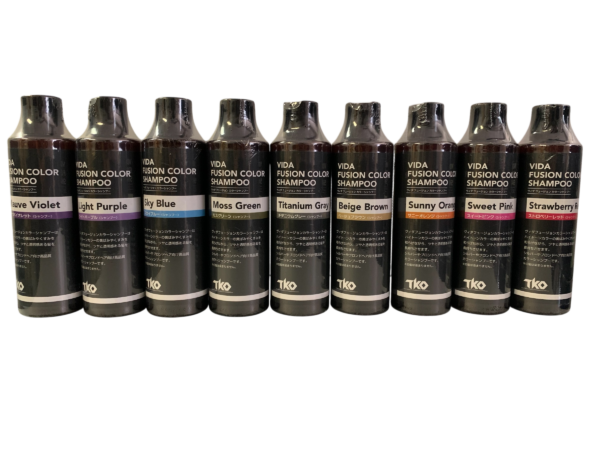 株式会社ラウンドライフさんから発売されるVIDAフュージョンカラーシャンプーは、ハイトーンカラーの褪色防止やブリーチヘアの黄ばみやくすみを和らげ、ツヤと透明感を長持ちさせるのに効果的です。多様な色目に対応できるよう9色で展開されています。