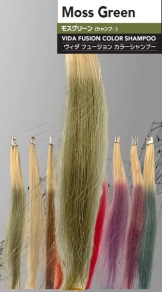 ブリーチを施した人毛の毛束にVIDAフュージョンカラーシャンプーを使用したのがこちらです。