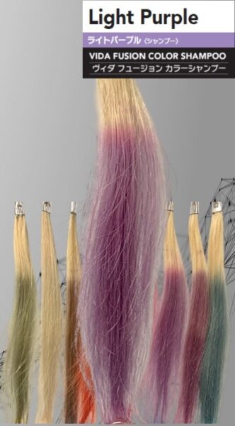 株式会社ラウンドライフさんから発売されるVIDAフュージョンカラーシャンプーは、ハイトーンカラーの褪色防止やブリーチヘアの黄ばみやくすみを和らげ、ツヤと透明感を長持ちさせるのに効果的です。多様な色目に対応できるよう9色で展開されています。